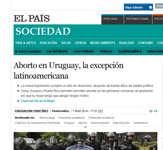 El pasado mes de diciembre se cumplió un año desde la aplicación de la nueva legislación de Uruguay sobre el aborto, objeto de treinta años de una batalla política de rara intensidad. Este país es el cuarto que autoriza el aborto en América Latina, después de Cuba, Guyana y Puerto Rico. En este último la ley teóricamente prohíbe el aborto que no esté indicado por un médico para proteger la salud de la embarazada, pero esa ley contraviene un dictamen del Tribunal Supremo de EE UU que es de aplicación también en la isla al afectar a derechos fundamentales. La legalización de la interrupción voluntaria del embarazo en Uruguay tiene, sin embargo, una importancia inédita en Latinoamérica, teniendo en cuenta las restrictivas legislaciones de los países de su entorno como Brasil y Argentina.